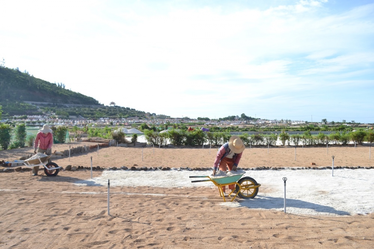 Nông dân Lý Sơn cải tạo đất chuẩn bị xuống giống vụ hành mùa hè thu.